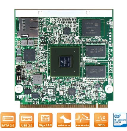Storage onboard eMMC 5.0 flash up to 64 GB, onboard mSD socket