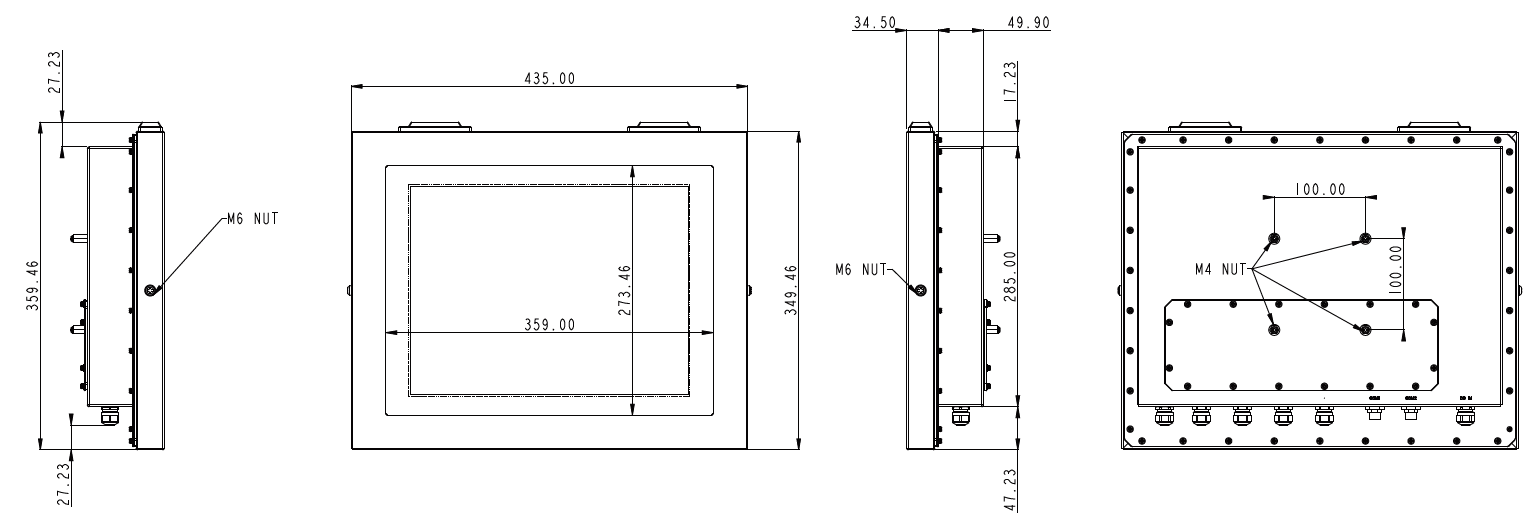 | Mounting | VESA 100, side mount (M6*2) | ||||