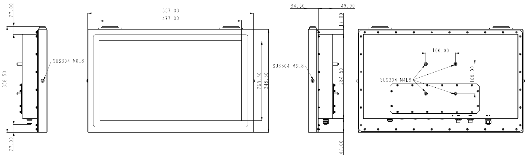 | Mounting | VESA 100, side mount (M6*2) | ||||
